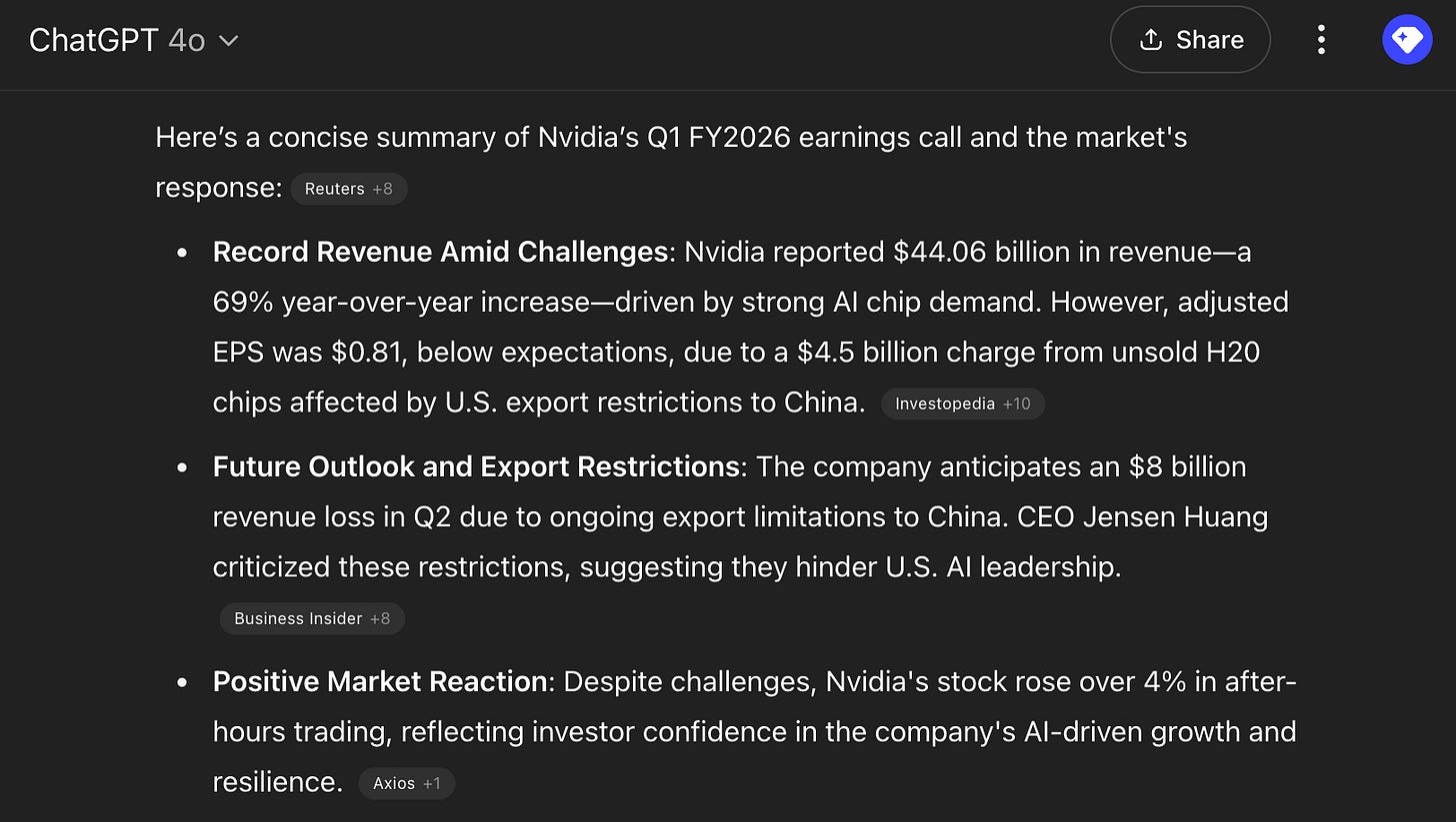 ChatGPT (OpenAI): Used for earnings breakdowns, strategic summaries, and valuation insights; integrated into Excel and Copilot workflows.